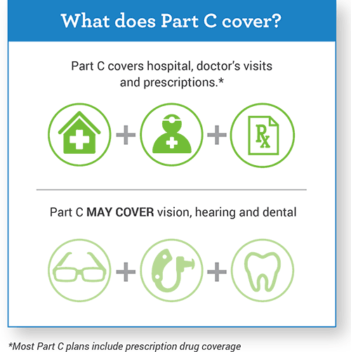Medicare Part C plans must cover all the same things as Medicare Part A and B. They also may cover services that Original Medicare does not pay for. Examples are eye exams, a pair of eyeglasses each year or a hearing exam. They may charge different amounts than you would pay through Original Medicare.